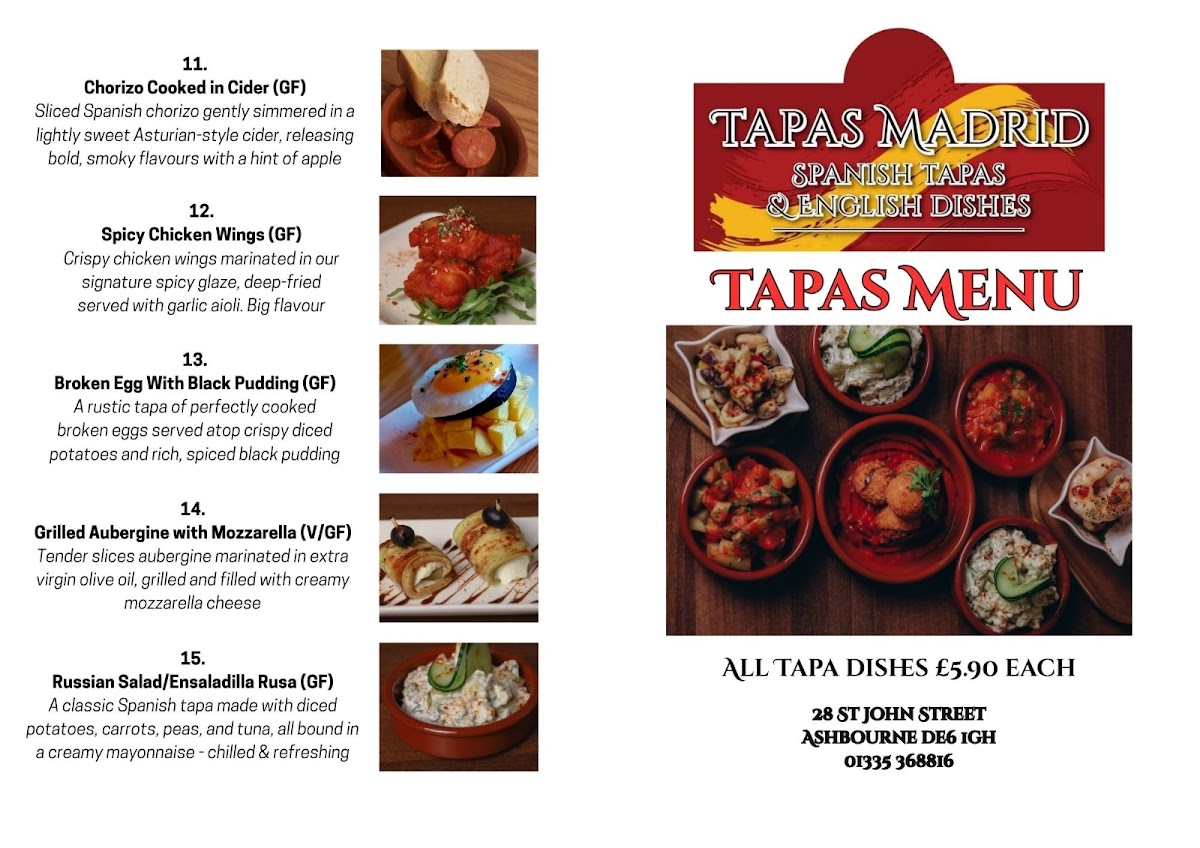 Welcome to Tapas Madrid, a delightful culinary oasis nestled in the heart of Ashbourne at 48 St John St, Market Place. This charming restaurant offers an authentic taste of Spain, infusing the local landscape with the vibrant flavors and welcoming spirit of Spanish cuisine. Whether you're a seasoned tapas enthusiast or a newcomer eager to explore, Tapas Madrid promises an unforgettable dining experience.